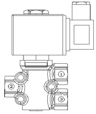 3/2 Way Universal Brass Solenoid Valve.Function: 3/2 way universal solenoid valve has 3 ports (1 inlet and 2 outlets) with 2 positions. As a universal function 3 way solenoid valve the inlet port can be any of the 3 ports depending on application requirements and flow can be in any direction, looking at the the picture on the right see below for piping options to achieve the required function as below. To obtain 3/2 Way Diverting Solenoid Valve Function.Using port 2 as the inlet port flow can be diverted to port 1 or port 3 in both directions. When de-energised flow will be port 2 to port 1 in both directions with port 3 closed. When energised flow is port 2 to port 3 in both directions with port 1 closed. To obtain 3/2 Way Normally Open Solenoid Valve Function.Using port 1 as the inlet port. When de-energised flow will be port 1 to port 2 in both directions with port 3 closed. When energised port 1 will close with port 2 allowing flow to port 3 in both directions. To obtain 3/2 Way Normally Closed Solenoid Valve Function.Using port 3 as inlet port. When de-energised inlet port 3 will stay closed and port 1 will allow flow to port 2 in both directions. When energised port 3 will allow flow to port 2 in both directions but port 1 will be closed. Ideal for large bore pneumatic valve actuator control or large bore pneumatic cylinder control in any configuration of normally closed or open function or simple flow diversion for high flow pneumatic process systems. Port sizes from 1/4 to 1/2 thread, pressures from 0 to 10 bar, optional manual reset, manual override function and ATEX Hazardous area EEx d IIC T6 coil. |